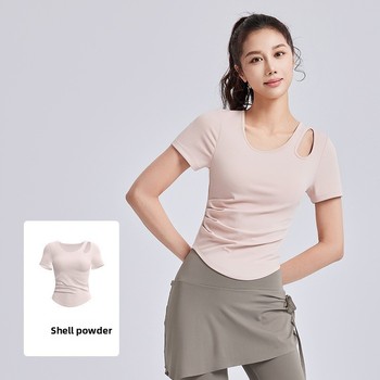 LOGO personalizzato morbido U Slim Fit Sport Gym Yoga a spalla vuota reggiseno imbottito allenamento traspirante top corto a maniche corte T-shirt